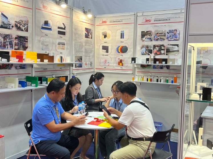 展会期间,凯时展位人流如织,来自东南亚等地的专业买家、行业专家纷纷驻足交流。公司团队现场通过实物展示、技术讲解与应用案例分享,生动呈现了旗下塑胶板材棒材,在耐用性、抗腐蚀性、轻量化及环保性能等方面的卓越表现,充分满足食品包装、汽车制造、电子电器、医疗设备等多领域对高可靠性材料的严苛需求,赢得客户高度认可。产品包括:PP、PE、POM、PC、ABS、PU、PA6、PEI、PPS等材料。